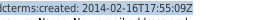 dcterms:created: 2014-02-16T17:55:09Z which means February - 16 - 2014- 17:55:09 where Z is a suffix for the aviation code for UTC 0 so 17:55 - 5 = 12:55 UTC -05:00 so the answer is c. Sun, 16 February 2014 12:55:09 -05:00