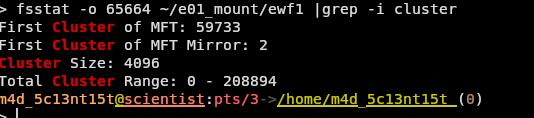 fsstat -o 65664 ~/e01_mount/ewf1 | grep -i "cluster"