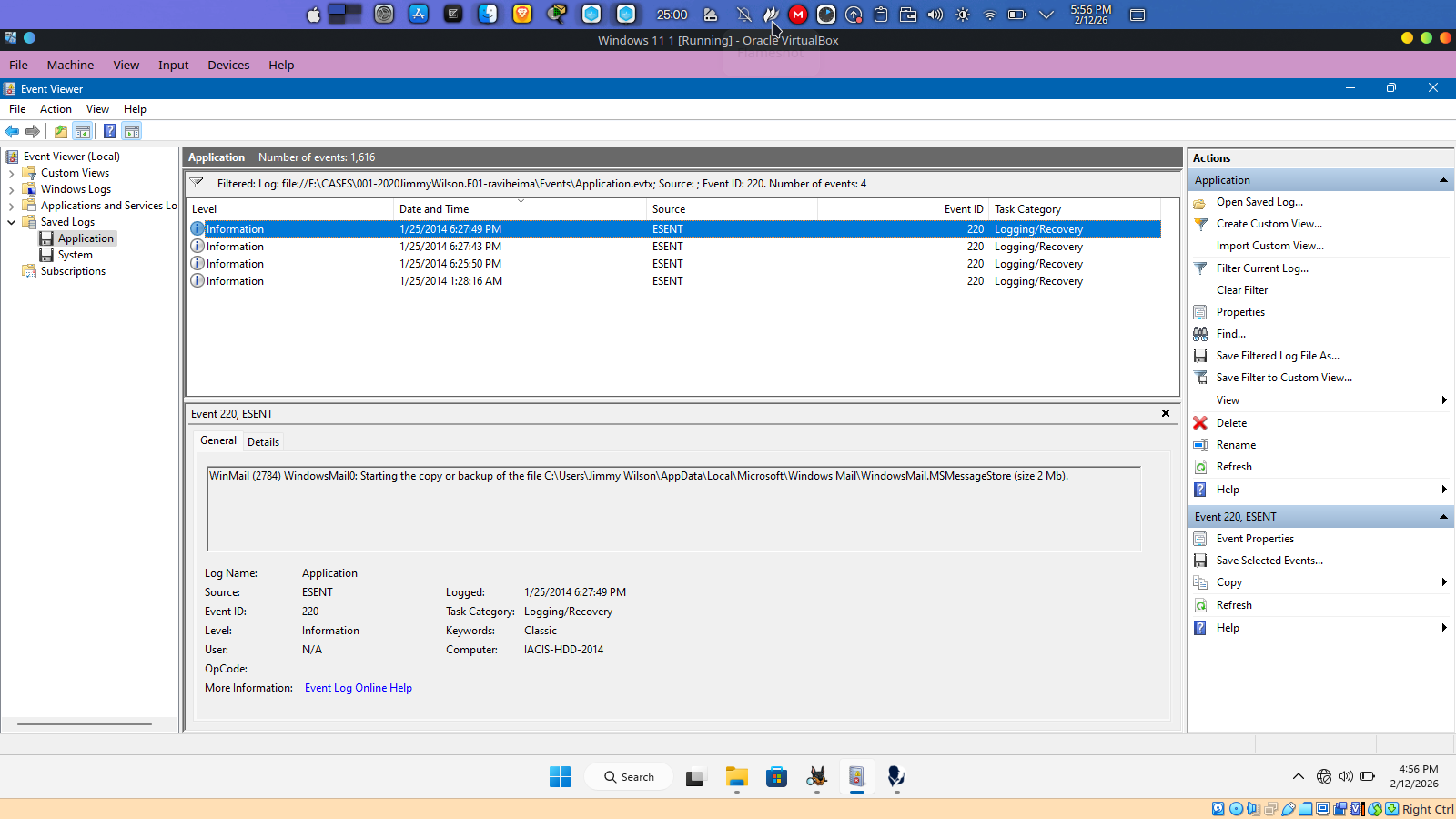2. Application.evtx — ESENT Event ID 220 (Corroboration)