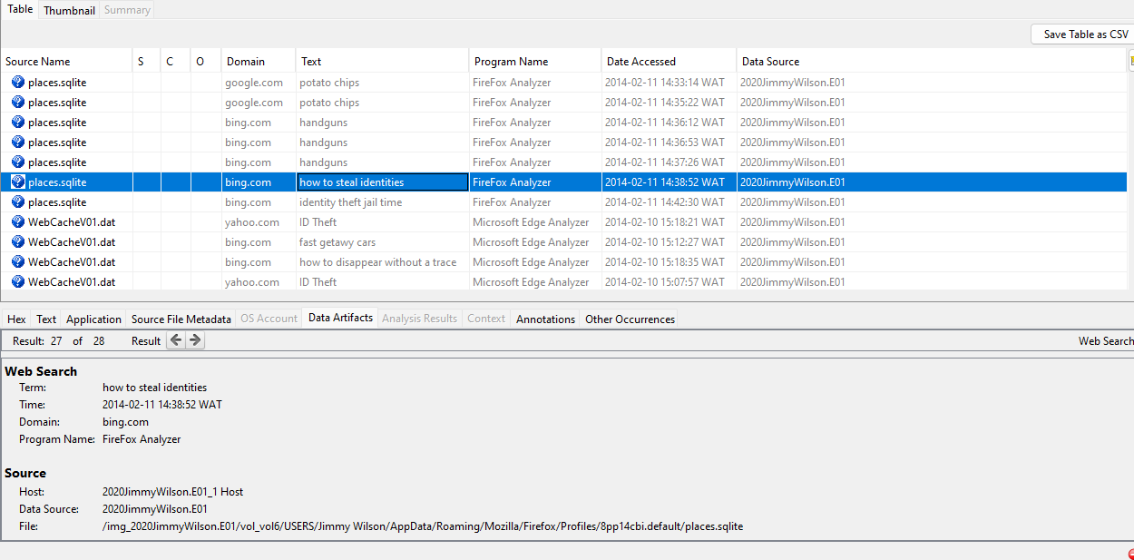 A detailed walkthrough on DFIR on 2020JimmyWilson based on a coursework assignment. This documents my full investigation process using tools like Autopsy, Sleuthkit, and custom scripts