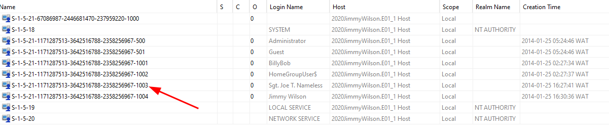 And the RID is the last number after a dash 1003 converting 1003 to hex results in 0x3eb